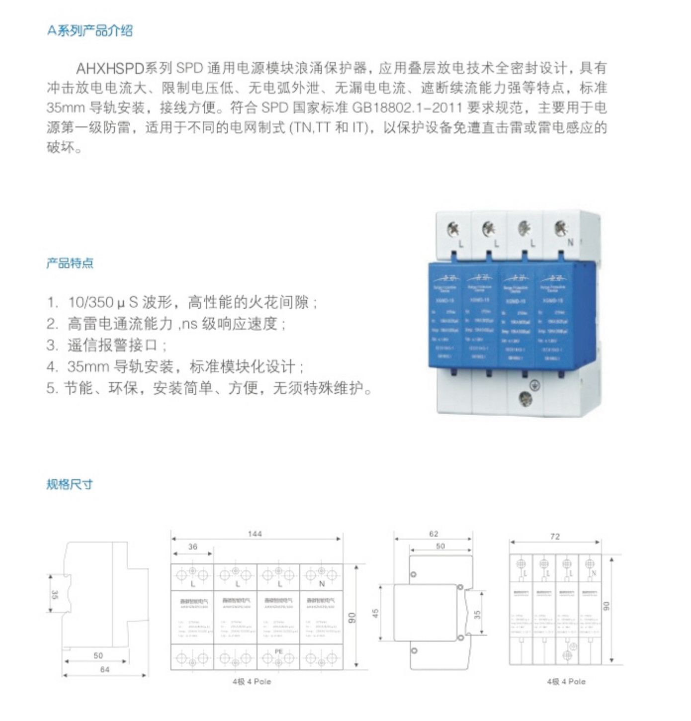 电源低压电浪涌保护模块A系列 AHXHSPD/400